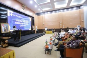 Wali Kota Kotamobagu, Ir. Hj. Tatong Bara saat memberikan sambutan untuk mewakili para pimpinan daerah pada penerimaan Laporan Hasil Pemeriksaan (LHP) atas Audit Kinerja dari Badan Pemeriksa Keuangan (BPK) Republik Indonesia Perwakilan Sulawesi Utara, dan Senin (9/1/2023).(foto: Adit)LHP yang diserahkan Kepala BPK RI Perwakilan Sulawesi Utara, Arief Fadillah, S.E., M.M, CSFA kepada Wali Kota yang didampingi Wakil Ketua DPRD Kota Kotamobagu, Herdy Korompot, S.E, tersebut, merupakan LHP atas Audit Kinerja atas penyediaan akses air minum dan sanitasi layak dan aman.
