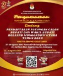 TAJUK BOLMUT-Zamaludin Djuka membuka secara resmi Rapat Koordinasi (Rakor) persiapan penerimaan pendaftaran dan pemeriksaan kesehatan bakal Calon Bupati dan Wakil Bupati Bolaang Mongondow Utara dalam pemilihan serentak Nasional Tahun 2024 bersama Forkopimda. Bertempat di Coconut Beach Pantai Pinagut, (24/08/2024).