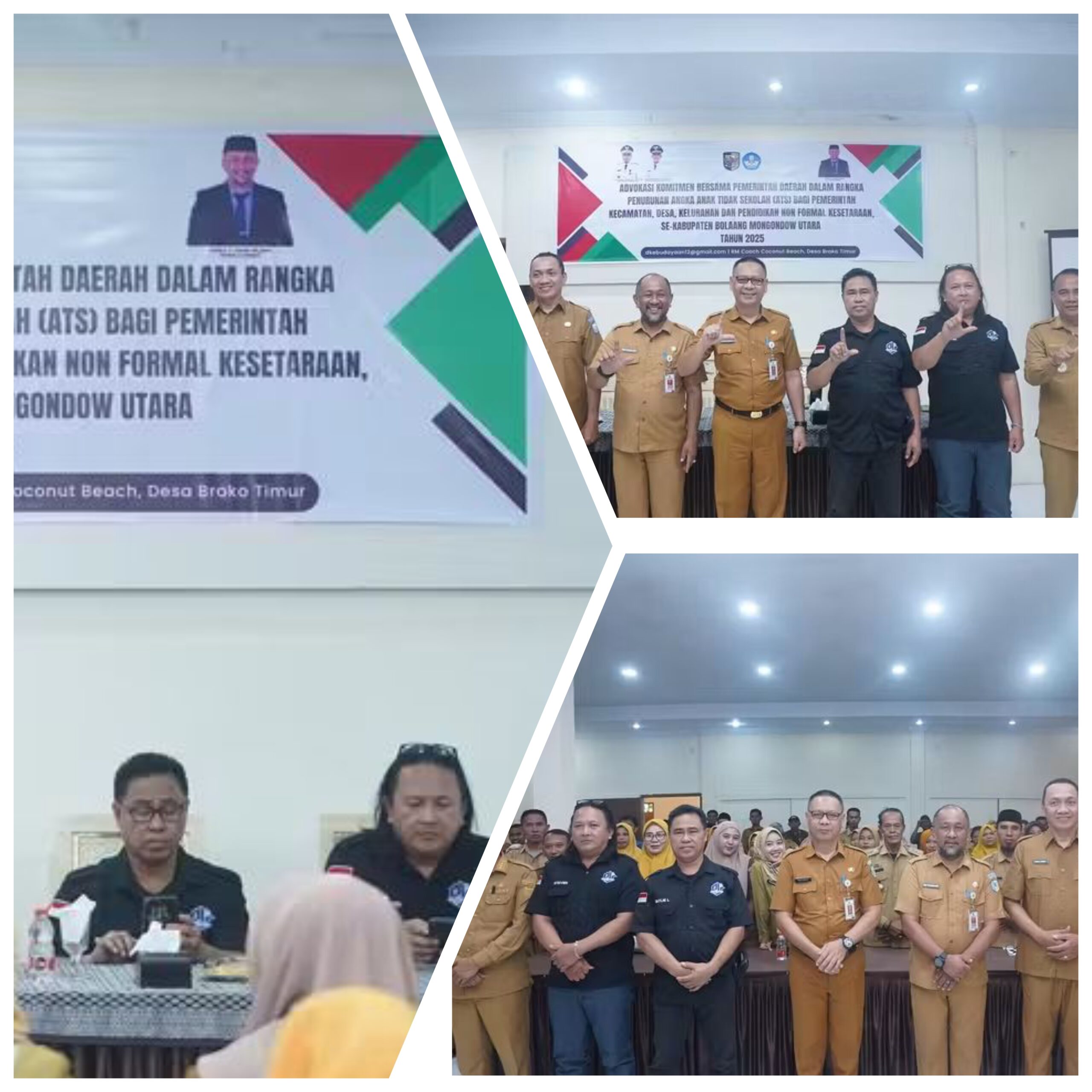 TAJUK BOLMUT-Bupati Bolaang Mongondow Utara (Boltara) diwakili Asisten Bidang Pemerintahan dan Kesra, Rachmat Pontoh membuka dengan resmi kegiatan Advokasi Komitmen Bersama Pemerintah Daerah Dalam Menurunkan Angka Anak Tidak Sekolah (ATS) Bagi Pemerintah Kecamatan, Desa Dan Pendidikan Non Formal Se-Kabupaten Tahun 2025 yang bertempat di Coconut Beach Cafe, Kawasan Wisata Pantai Batu Pinagut, Senin (17/11/25).