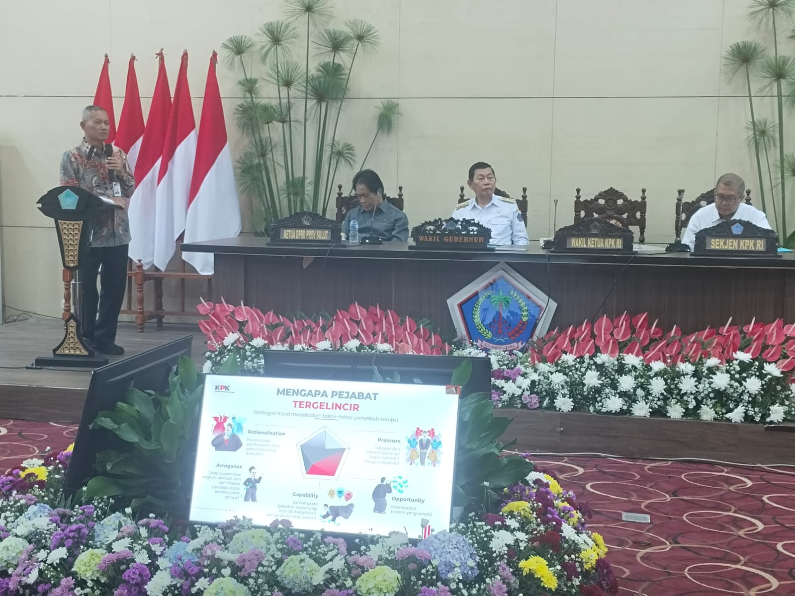 Wakil Ketua KPK RI saat menyampaikan sambutan. (foto: Vid)TAJUKSULUT – Komisi Pemberantasan Korupsi (KPK), melakukan kunjungan ke Provinsi Sulawesi Utara (Sulut), Rabu 26 November 2025.