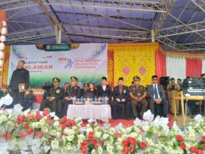 Wali Kota Kotamobagu, dr. Weny Gaib, Sp.M., saat memimpin upacara peringatan Hari Pahlawan Tahun 2025 yang digelar di Alun-alun Boki Hotinimbang, Senin (10/11/2025).(foto: Suta)Dalam amanatnya, Menteri Sosial menekankan bahwa Hari Pahlawan merupakan momentum untuk mengenang dan meneladani semangat perjuangan para pahlawan bangsa.