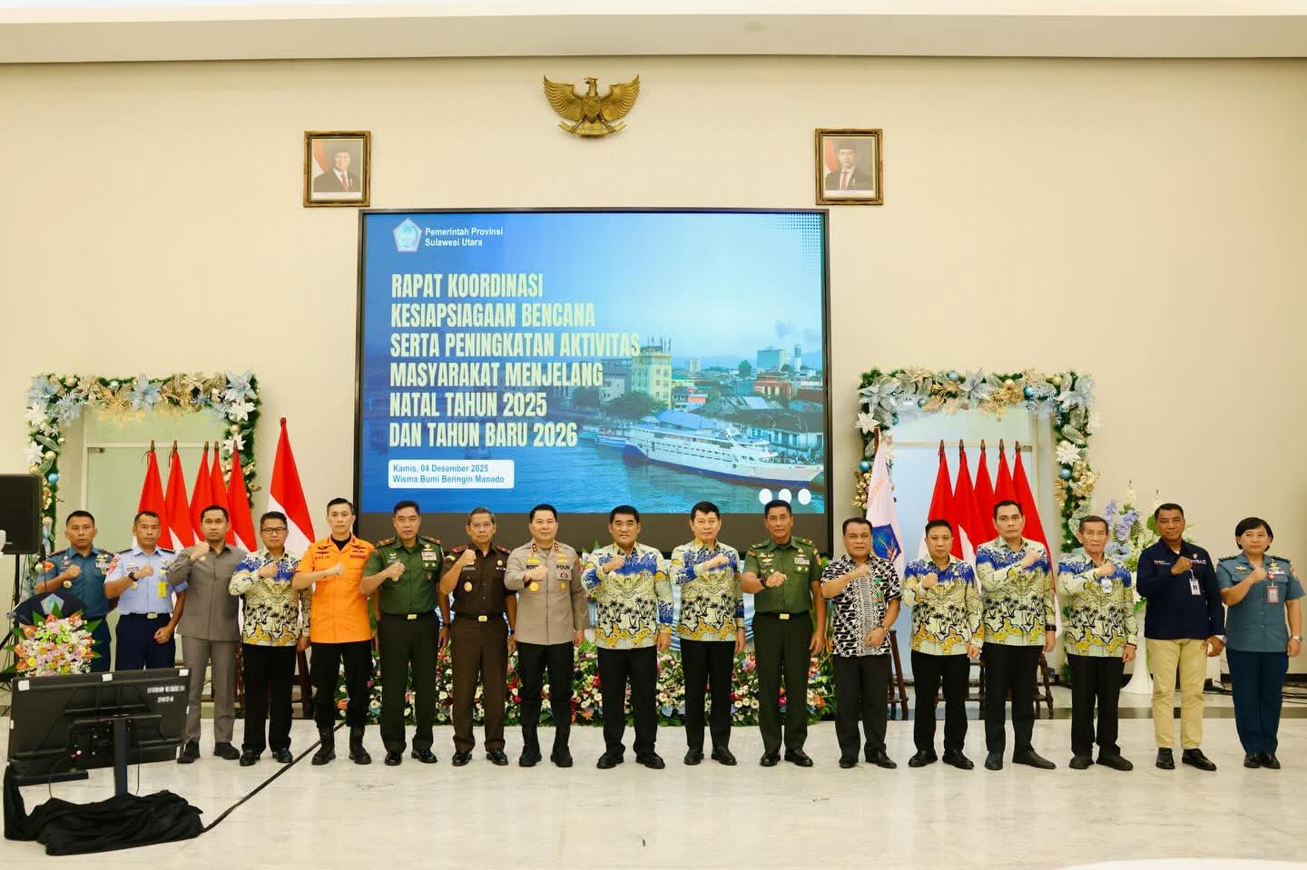 “Sulut termasuk katagori resiko tinggi dalam indeks resiko bencana alam. Sehingga tujuan rapat ini adalah untuk memastikan seluruh instansi siap, sigap, solid dan mampu bergerak cepat selama periode natal dan tahun baru,” kata Sekprov Tahlis Gallang.