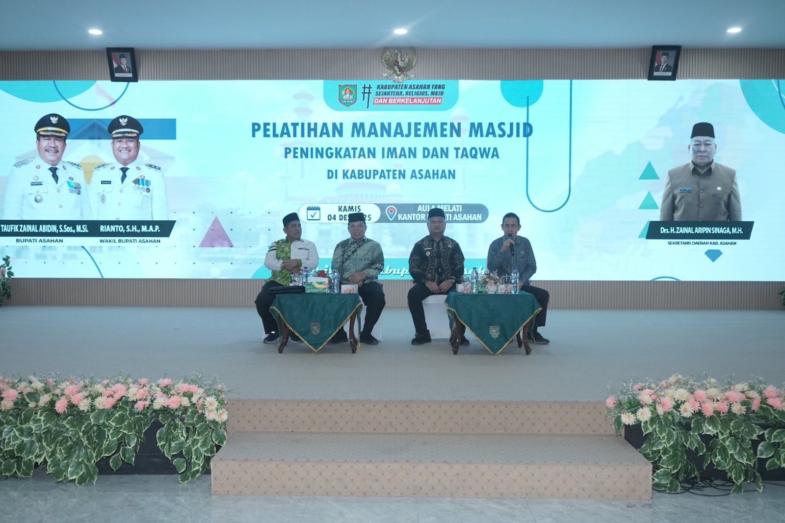 TAJUK ASAHAN – Dalam upaya memperkuat kapasitas pengelolaan masjid di seluruh wilayah kabupaten, Pemerintah Kabupaten Asahan menggelar Pelatihan Manajemen Masjid dan Peningkatan Iman dan Taqwa digelar di aula melati kantor Bupati Asahan, Kamis (04/12/2025).