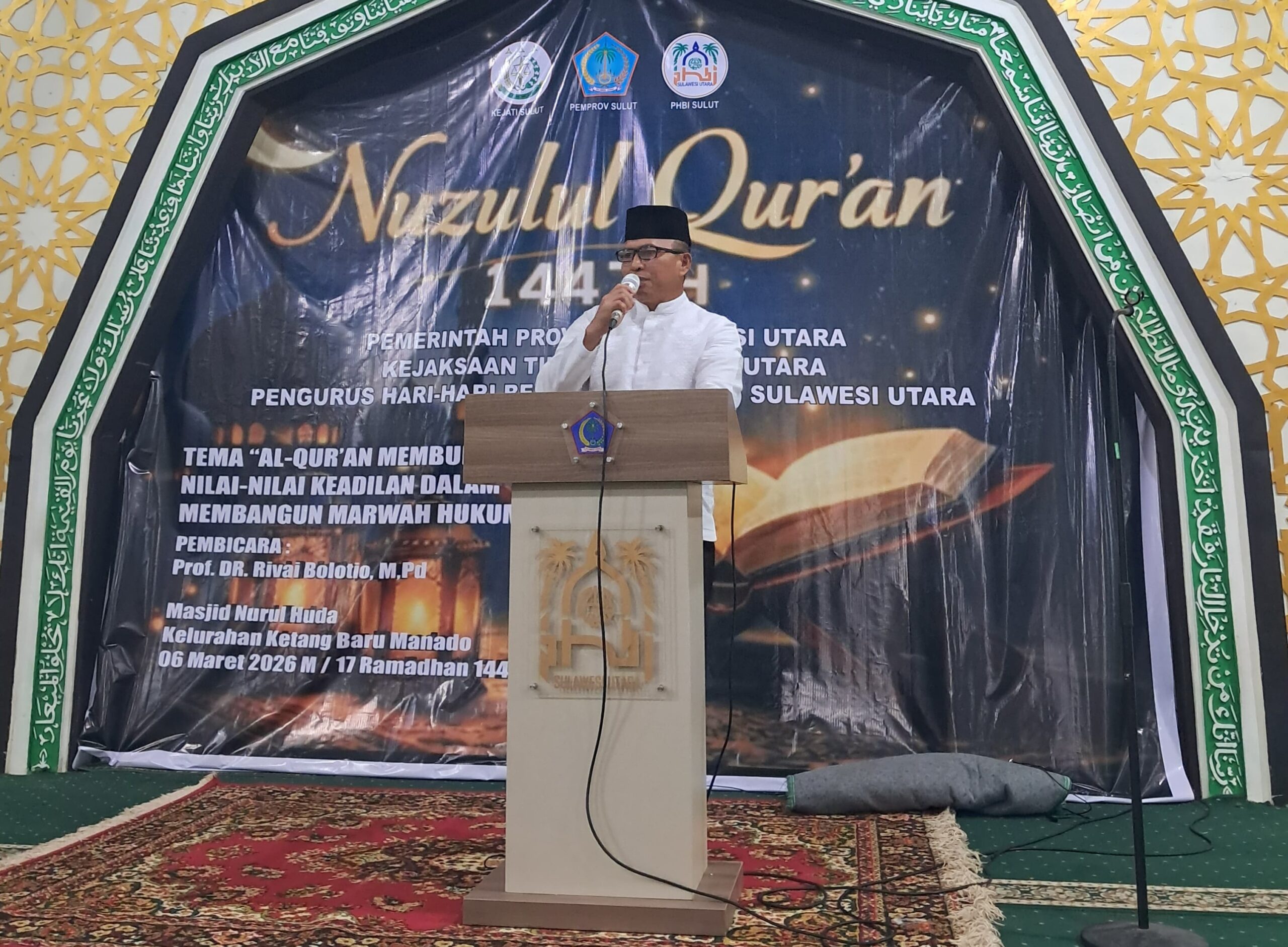 Di akhir sambutan, Tahlis memberikan apresiasi kepada PHBI Sulut dan Kejaksaan Tinggi Sulut atas kolaborasi yang luar biasa dalam menyelenggarakan acara peringatan malam Nuzulul Quran tersebut.