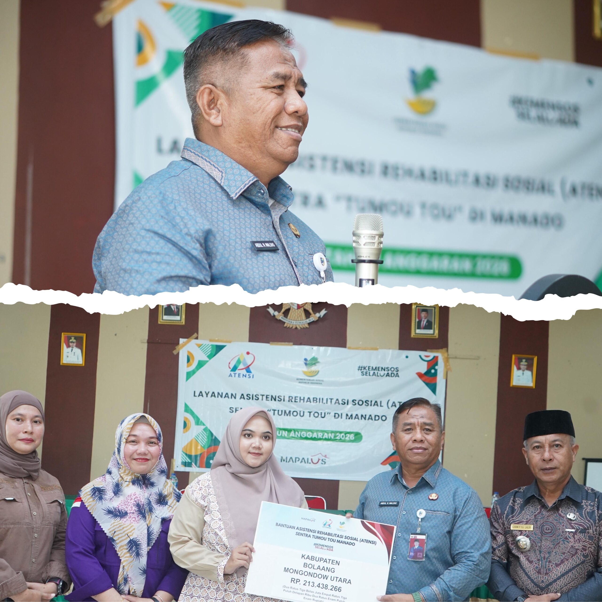 Ia juga menyampaikan apresiasi dan ucapan terima kasih kepada Sentra “Tumou Tou” Manado atas perhatian dan kontribusi yang telah diberikan kepada masyarakat Boltara melalui program ATENSI Kementerian Sosial RI.