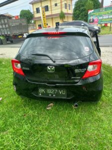 TAJUK ASAHAN – Sebuah Mobil minibus Brio Satya BK-1827-VU yang dikemudikan Bobo Sutejo (34) warga Kecamatan Tinggi Raja Kabupaten Asahan membawa penumpang 2 orang terlibat tabrakan dengan mobil barang Dump Truck BK-9063-YM yang dikemudikan Sutrisno (43) warga Kecamatan Buntu Pane Kabupaten Asahan di depan Mapolres Asahan, Senin (02/01/2022).