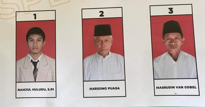 Terinformasi Calon nomor urut 1 Ramjul Huludu perolehan 369 suara, sedangkan nomor urut 2 Harsono Puasa yang juga sebagai incumbent memperoleh 451 suara, sementara calon nomor urut 3 Masrudin Van Gobel hanya meraup 207 suara, 13 suara rusak.