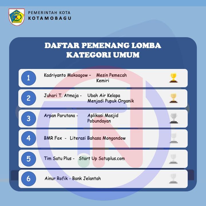 Berdasarkan rapat penilaian akhir dari tim juri IGA Kotamobagu tahun 2020 yaitu masing-masing, Harie Saksono, sebagai Peneliti Madya Bidang Bisnis dan Managemen Bapelitbang Kemendagri, Nancy Tindige, erwakilan Ombudsman Republik Indonesia Propinsi Sulut dan Magdalena Wullur, akademisi sekaligus dosen Universitas Sam Ratulangi, berhasil memutuskan inovasi yang keluar sebagai juara pada tahun ini.