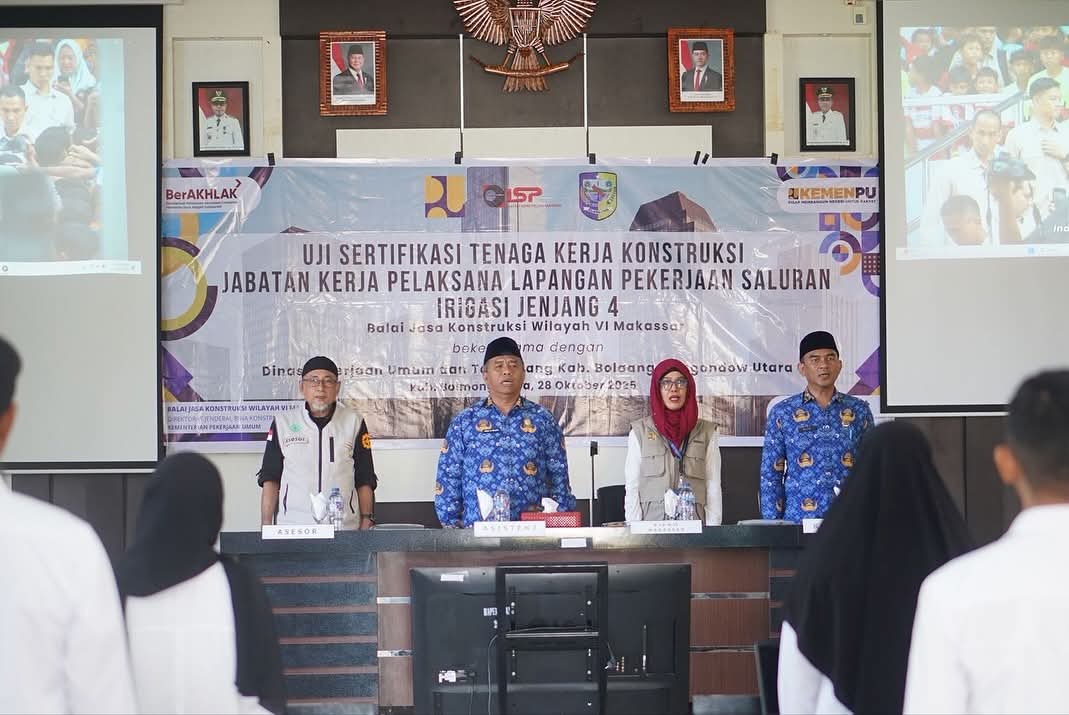 Pemkab Bolmong Utara Gelar Uji Sertifikasi Tenaga Kerja Konstruksi Jabatan Kerja Pelaksana Lapangan Pekerjaan Saluran Irigasi Jenjang 4