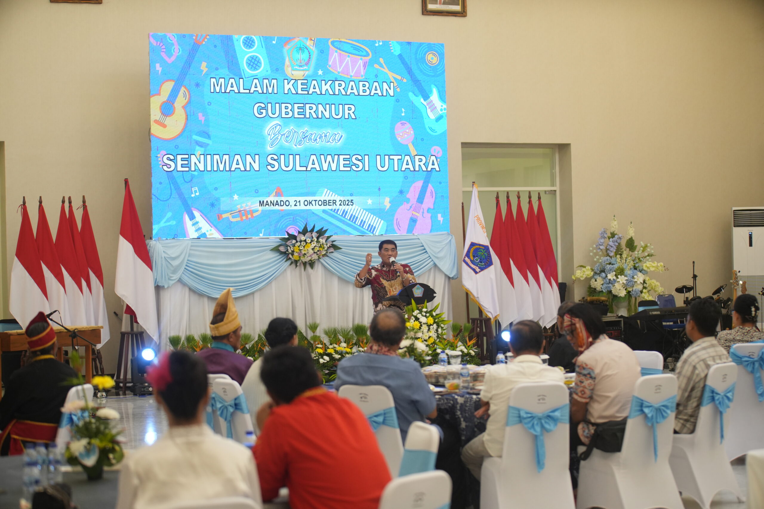 Hal tersebut diungkap Gubernur Sulut Mayjen TNI (Purn) Yulius Selvanus, dalam acara Keakraban Gubernur bersama seniman, bertempat di Wisma Negara Bumi Beringin, Manado, Selasa 21 Oktober 2025.
