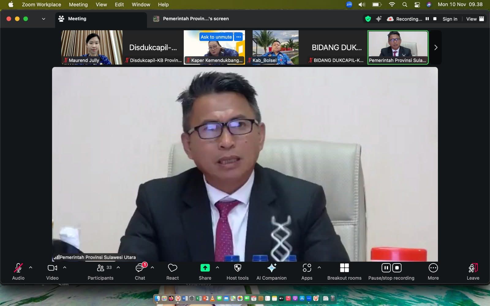 Hal tersebut disampaikan Pj Sekretaris Provinsi (Sekprov) Sulut, Tahlis Gallang, saat membuka Rapat Pendampingan Penyusunan Rencana Aksi Peta Jalan Pembangunan Kependudukan Kabupaten/Kota Tahun 2025-2029, yang digelar secara daring, Senin 10 November 2025.
