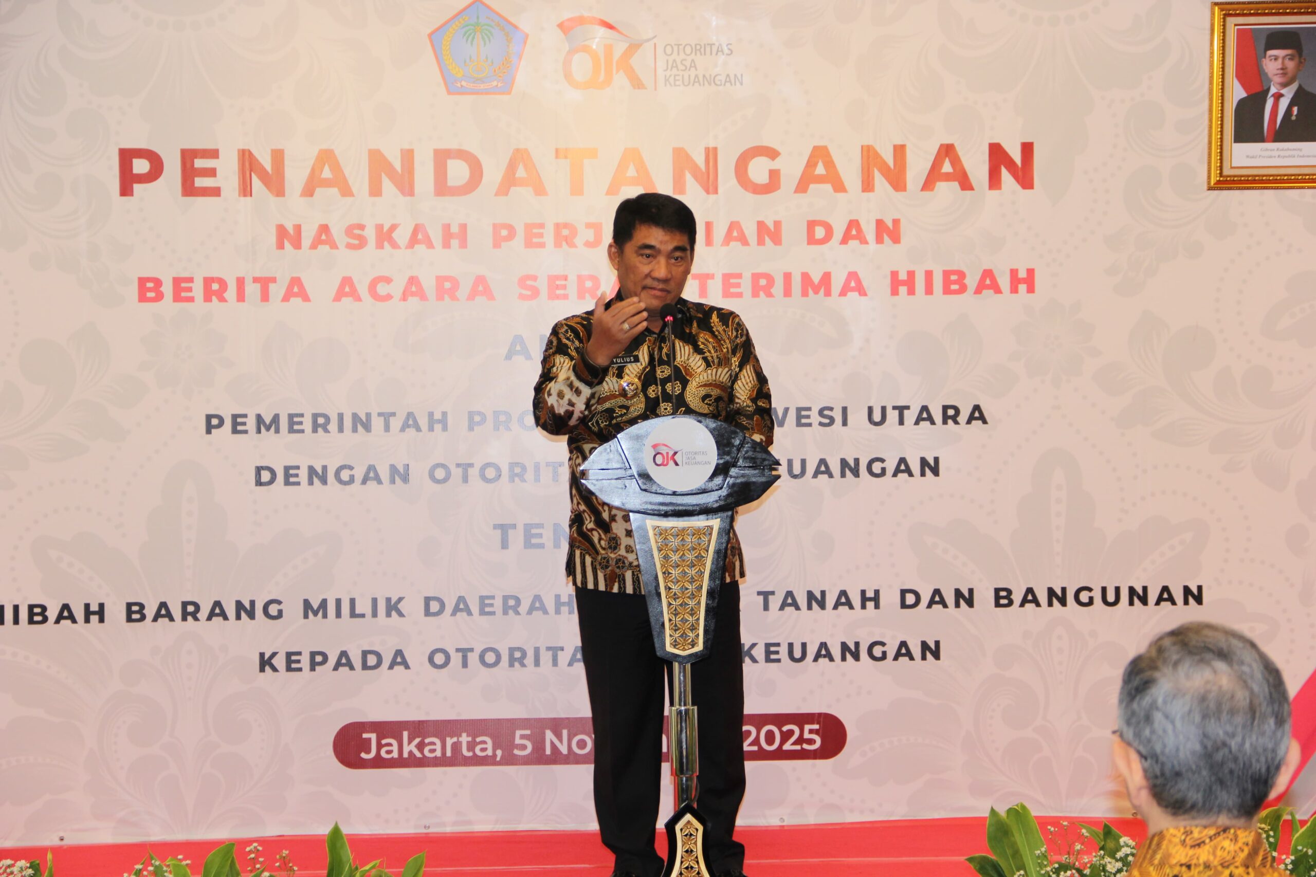 TAJUKSULUT – Pemerintah Provinsi (Pemprov) Sulawesi Utara (Sulut) melaksanakan penandatanganan Naskah Perjanjian Hibah (NPHD) dan Berita Acara Serah Terima (BAST) dengan Otoritas Jasa Keuangan (OJK), Rabu 05 November 2025, di Kantor OJK, Jakarta.