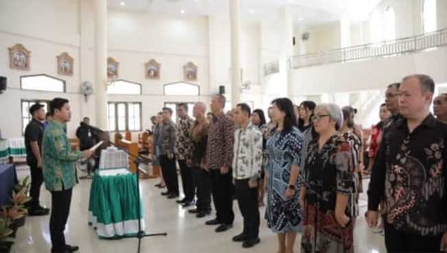 Prosesi pelantikan berlangsung di Gereja Katolik Paroki Kristus Raja Kotamobagu, Kamis (11/9/2025).
