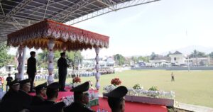 TAJUK KOTAMOBAGU – Penjabat (Pj) Wali Kota Kotamobagu, Abdullah Mokoginta., S.H., M.Si memimpin Upacara Peringatan Hari Sumpah Pemuda ke-96 Tahun 2024, di Alun-alun Boki Hontinimbang-Kotamobagu, Senin (28/10/2024).