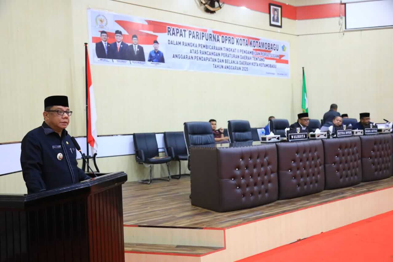 “Saya mengucapkan terima kasih yang sebesar-besarnya serta penghargaan yang setinggi-tingginya kepada Pimpinan dan seluruh anggota DPRD Kota Kotamobagu yang telah mengagendakan pelaksanaan Rapat Paripurna ini. Rapat ini sangat penting dalam rangka pembicaraan tingkat II untuk pengambilan persetujuan atas Rancangan Peraturan Daerah tentang APBD Kota Kotamobagu Tahun Anggaran 2025,” ujar Abdullah Mokoginta.