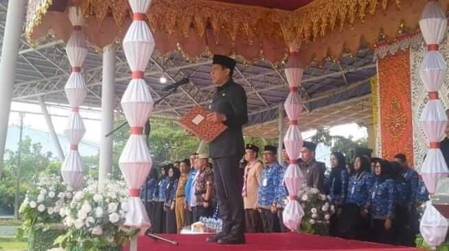 “Saudara-saudaraku sebangsa dan setanah air, hari ini kita berdiri di bawah langit merah putih, langit yang dulu menaungi para pemuda pada tahun 1928. Mereka tidak banyak bicara, mereka berani bersumpah dan menepatinya dengan darah dan nyawa. Hari ini tugas kita berbeda, kita tidak lagi mengangkat bambu runcing, tetapi mengangkat ilmu, kerja keras, dan kejujuran. Namun semangatnya tetap sama — Indonesia harus berdiri tegak, Indonesia tidak boleh kalah,” ucap Wali Kota saat membacakan sambutan Menpora.